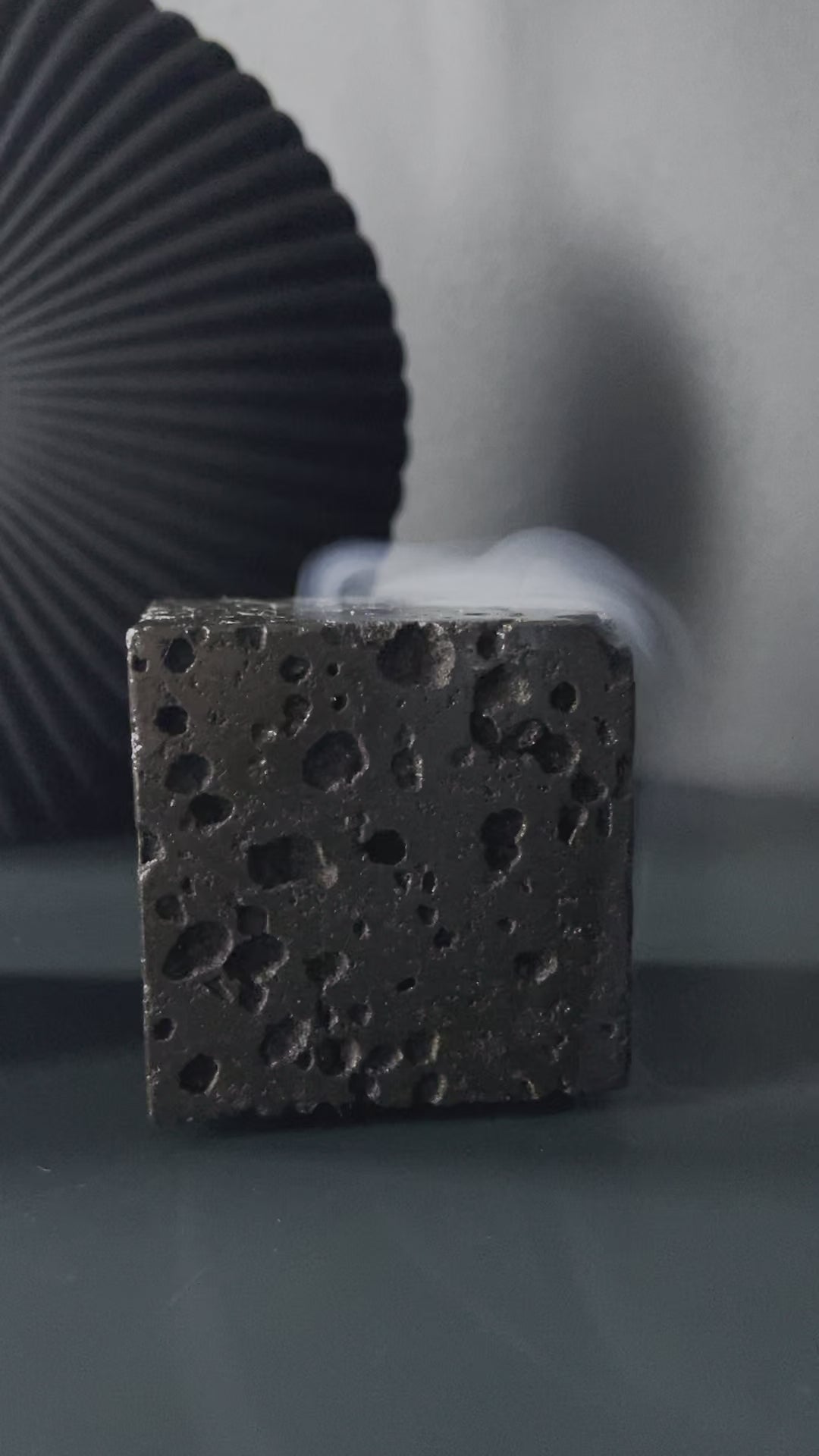 A classy incense stand made from natural Icelandic lava covered by a special oil to make black “wet stone” effect.